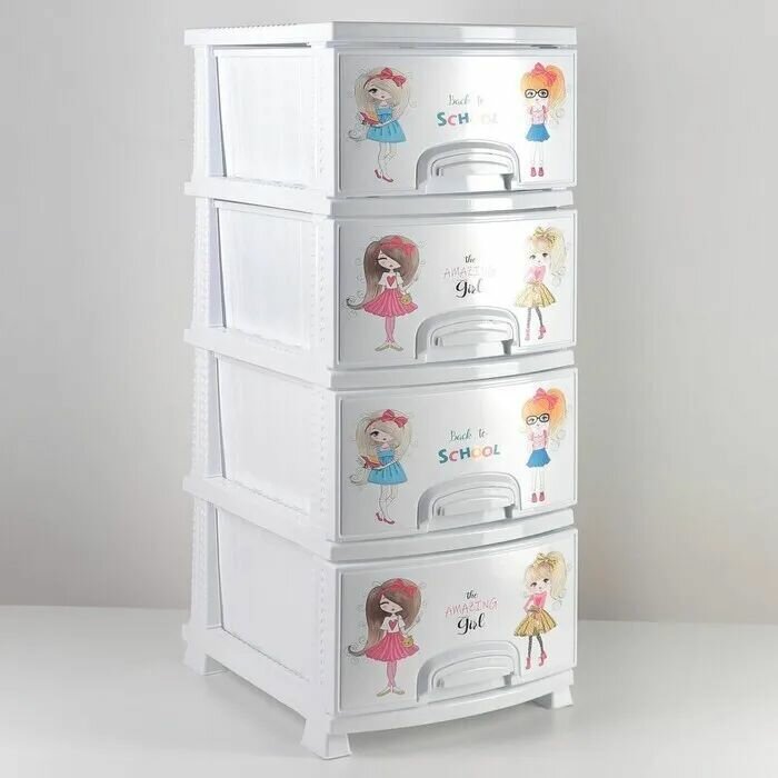 10 цен на Яркий комод детский "Девчонки" (белый) 380*470*950 мм, 4 вместительных ящика