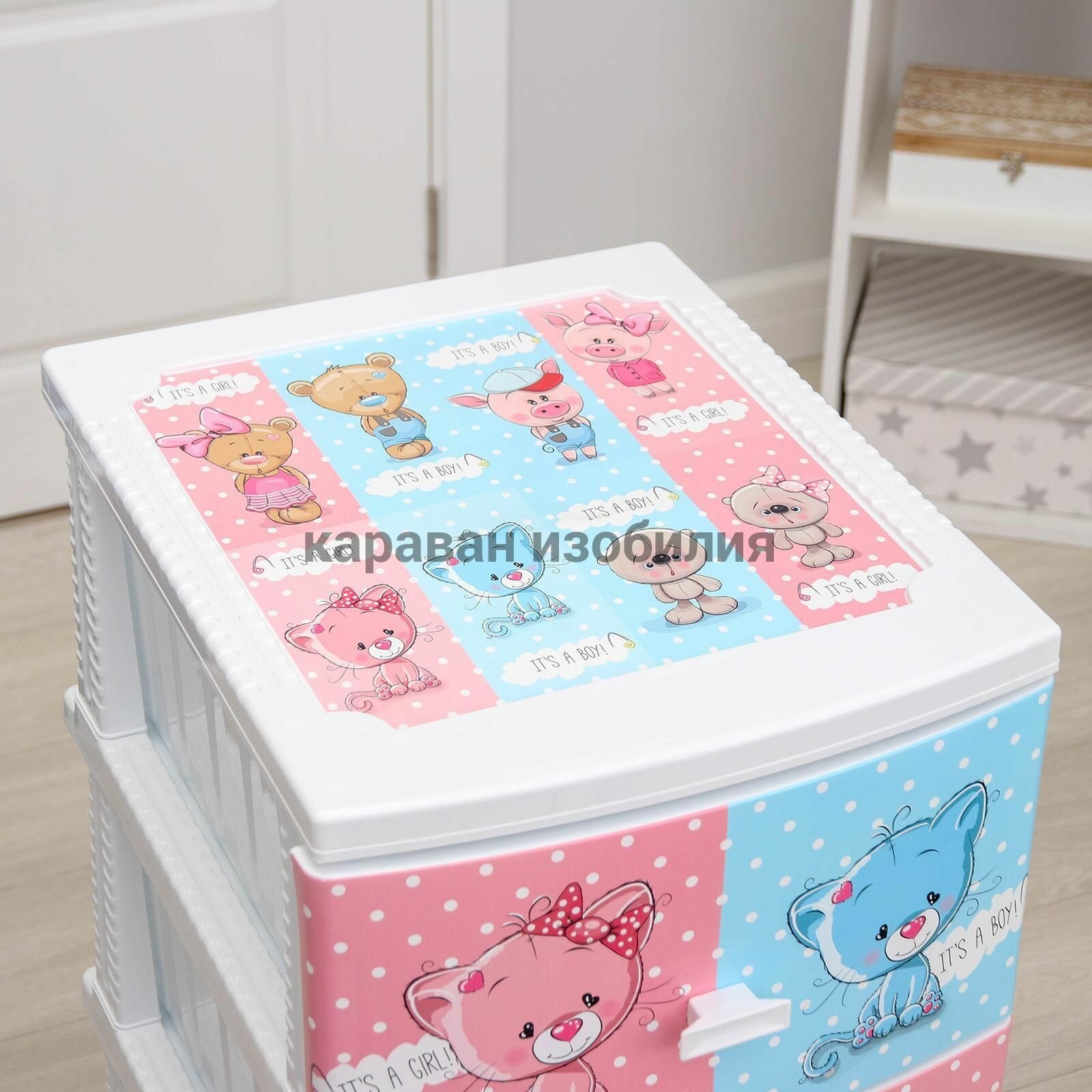 10 цен на Яркий комод детский "Зверята" (розовый/белый/голубой) 380*470*950 мм