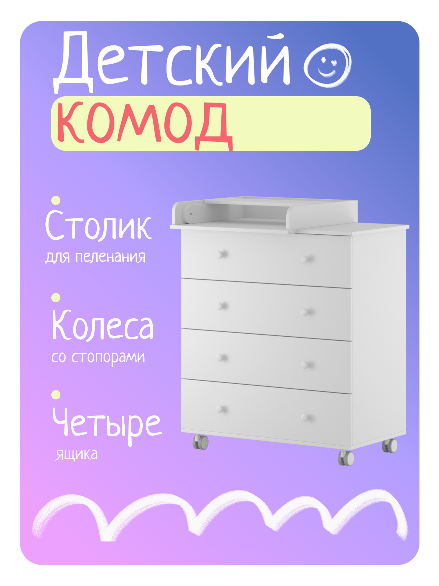 Комод для пеленания 800 четыре ящика цвет белый информация: