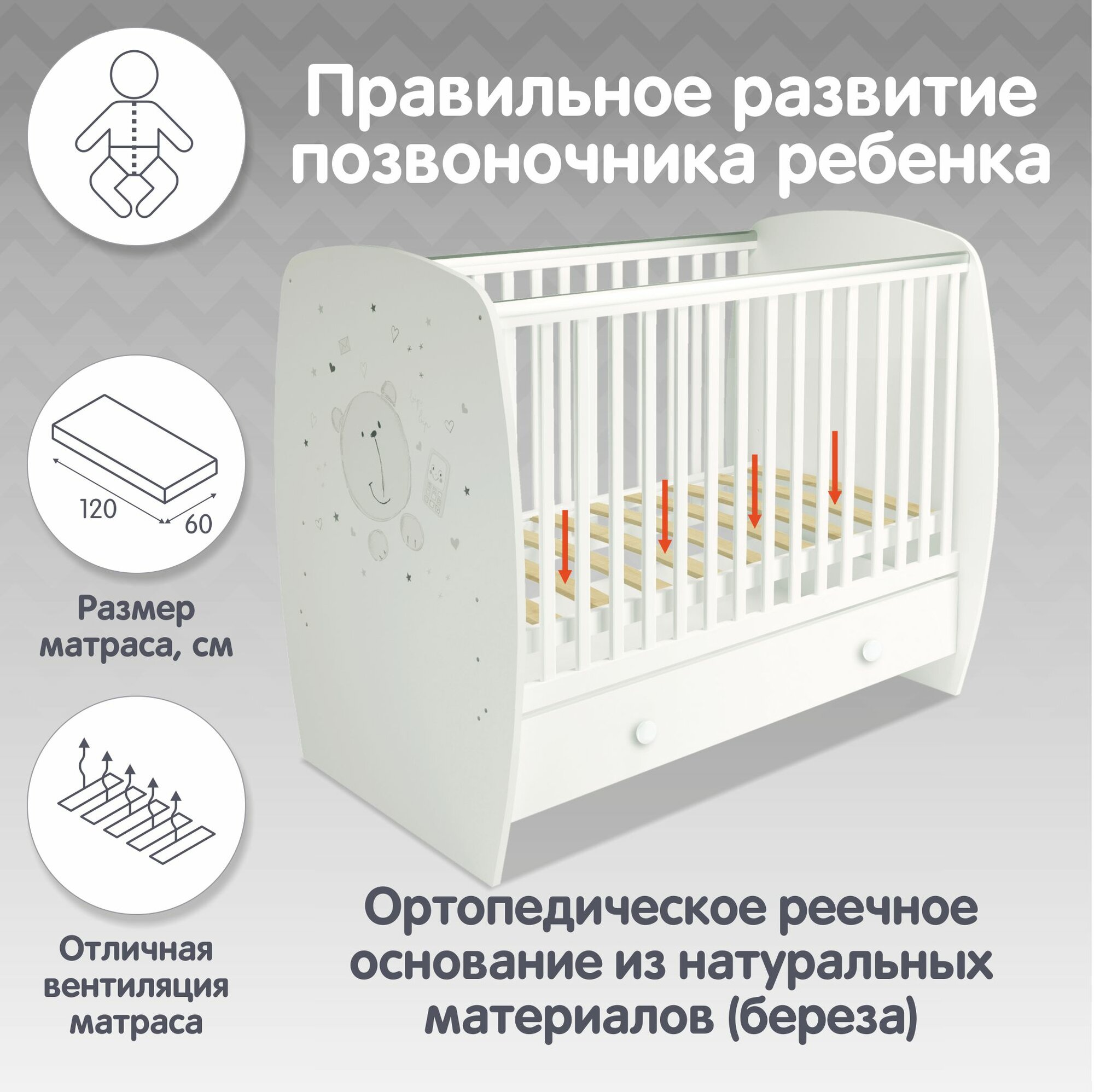 Кроватка Polini French 710, Teddy, с ящиком, белый информация: