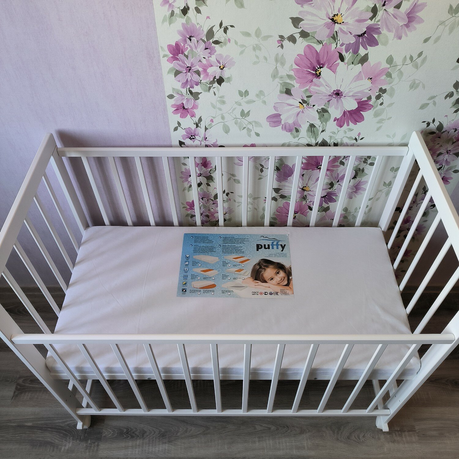 Кроватка Kristi колесо качалка белый + матрас ECO информация: