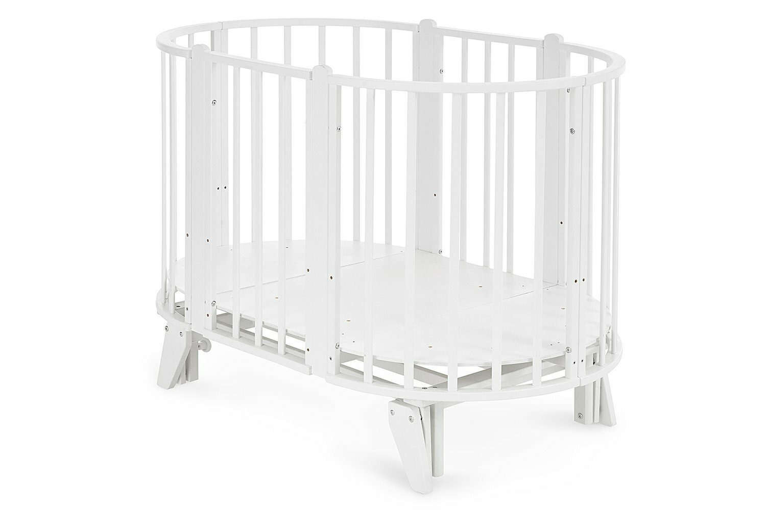 Кроватка детская трансформер для новорожденного Indigo Омега 6 в 1 с поперечным маятником, массив березы, белый
