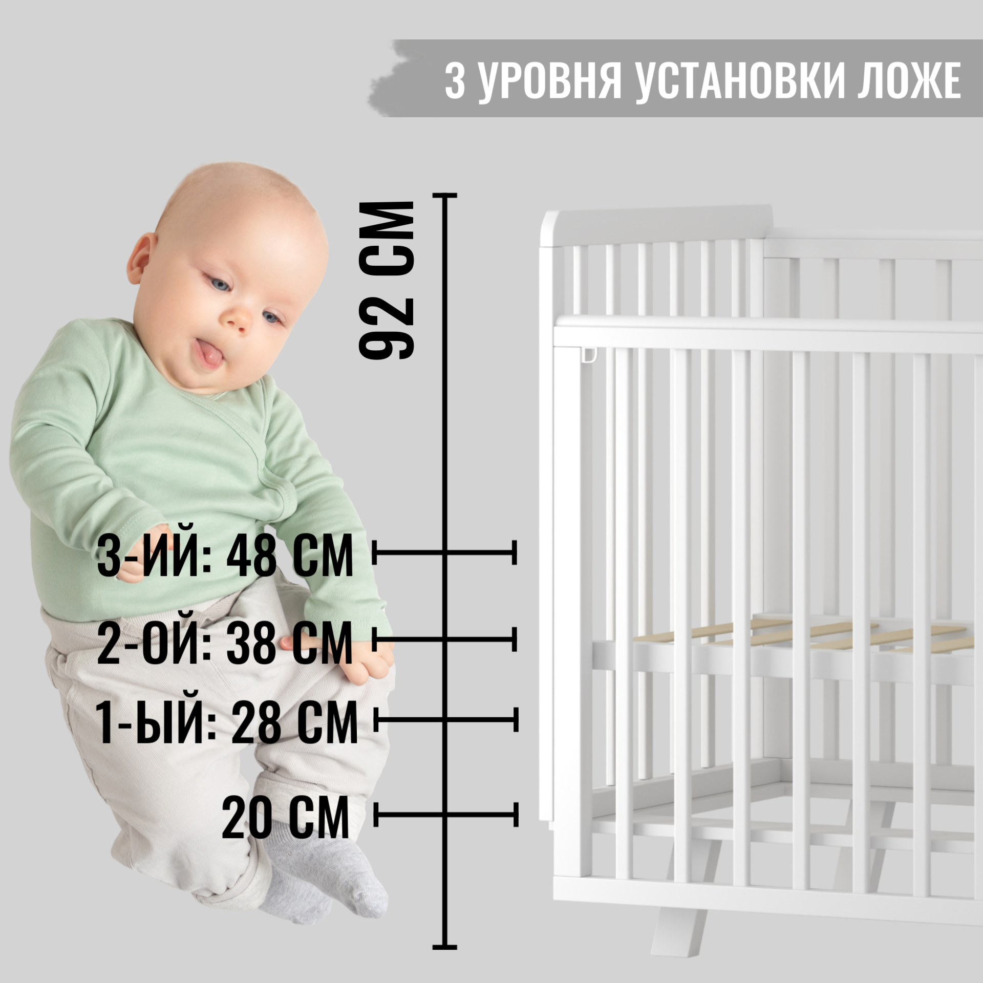 10 цен на Кроватка Torlino, для новорожденных, с маятниковым механизмом, матрасом, дерево, белый (косые ножки)