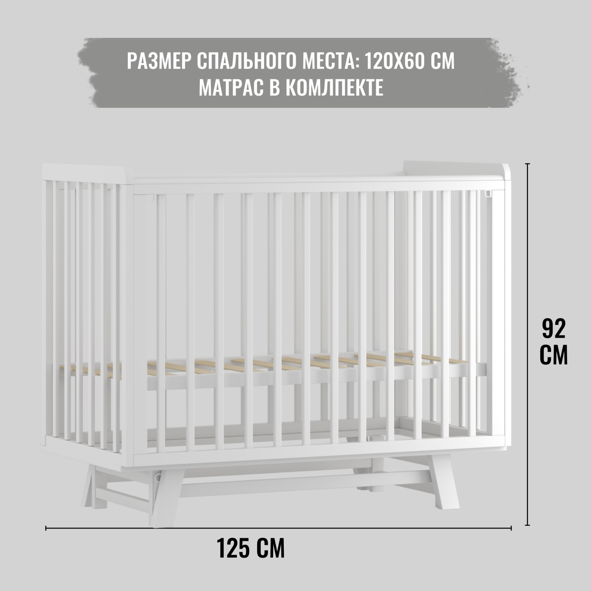 Кроватка Torlino, для новорожденных, с маятниковым механизмом, матрасом, дерево, белый (косые ножки) информация:
