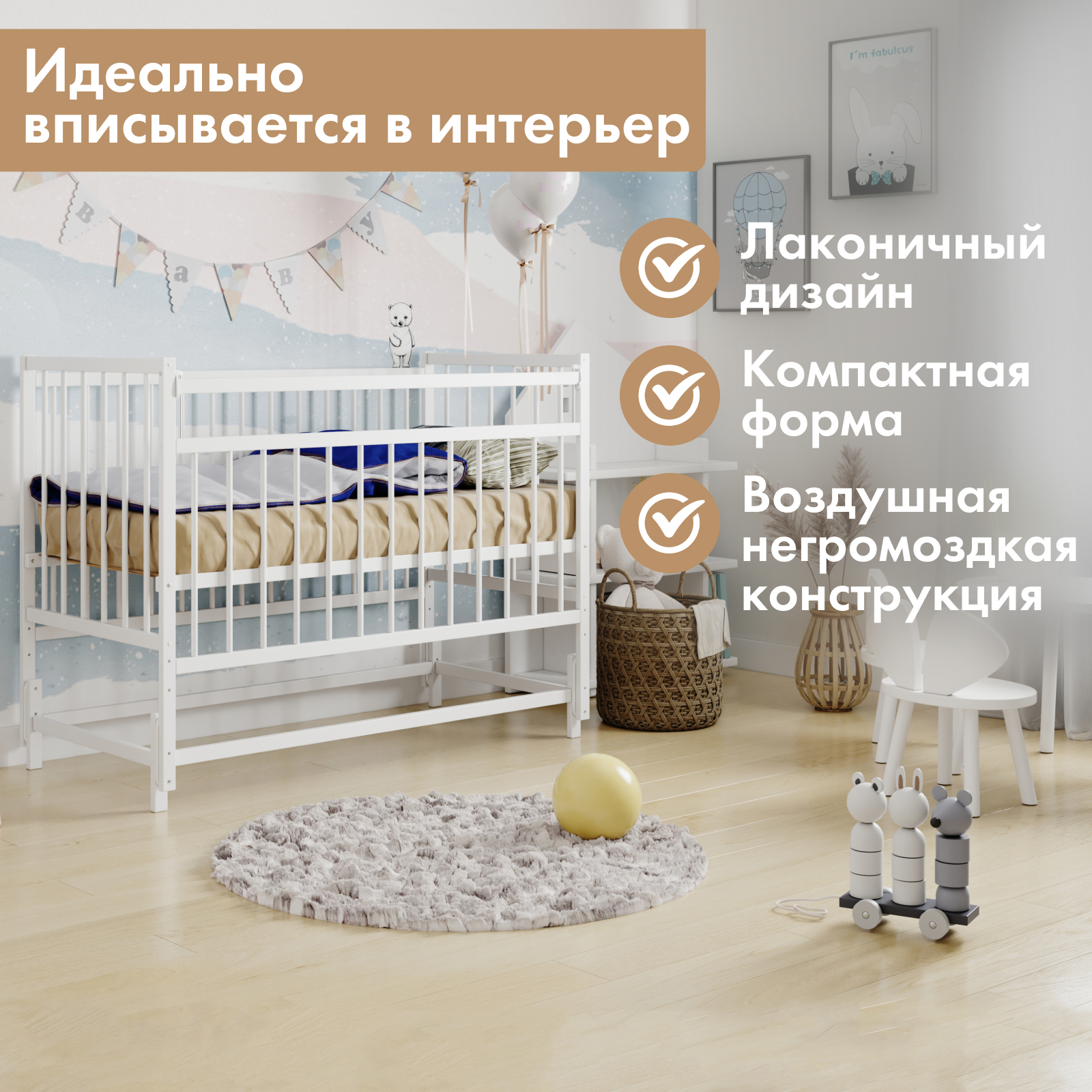 10 цен на Детская кроватка для новорожденного SoftSpace Air прямоугольная, 120х60 см, Береза, цвет Белый, с маятником