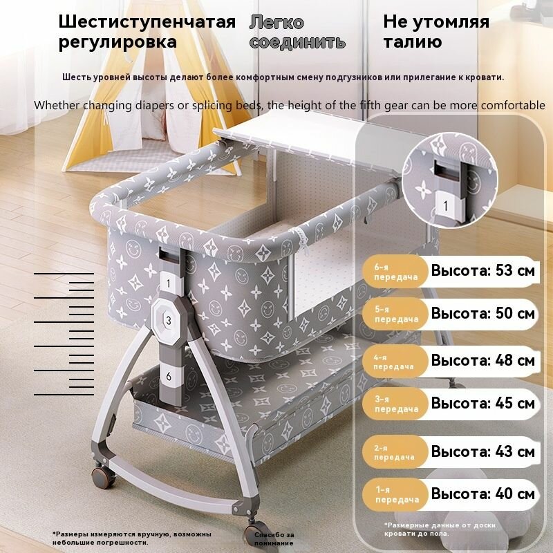 Кроватка трансформер для новорожденных 6 в 1, цвет серо белый