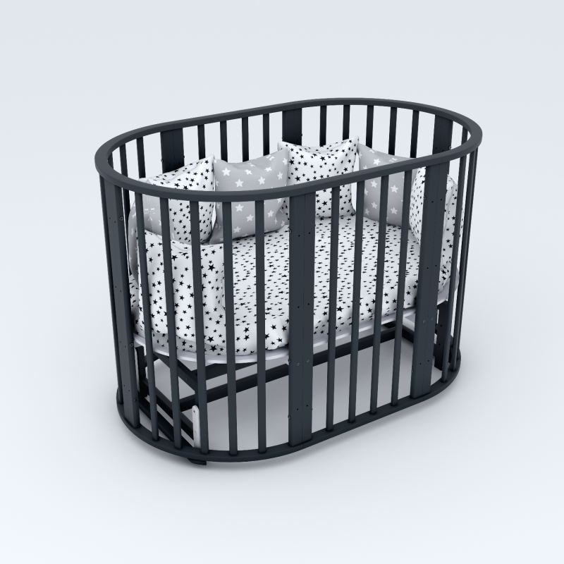 Детская кроватка для новорожденных Babyroom Мишка 7 в 1 с мятником, круглая/овальная, цвет серый информация:
