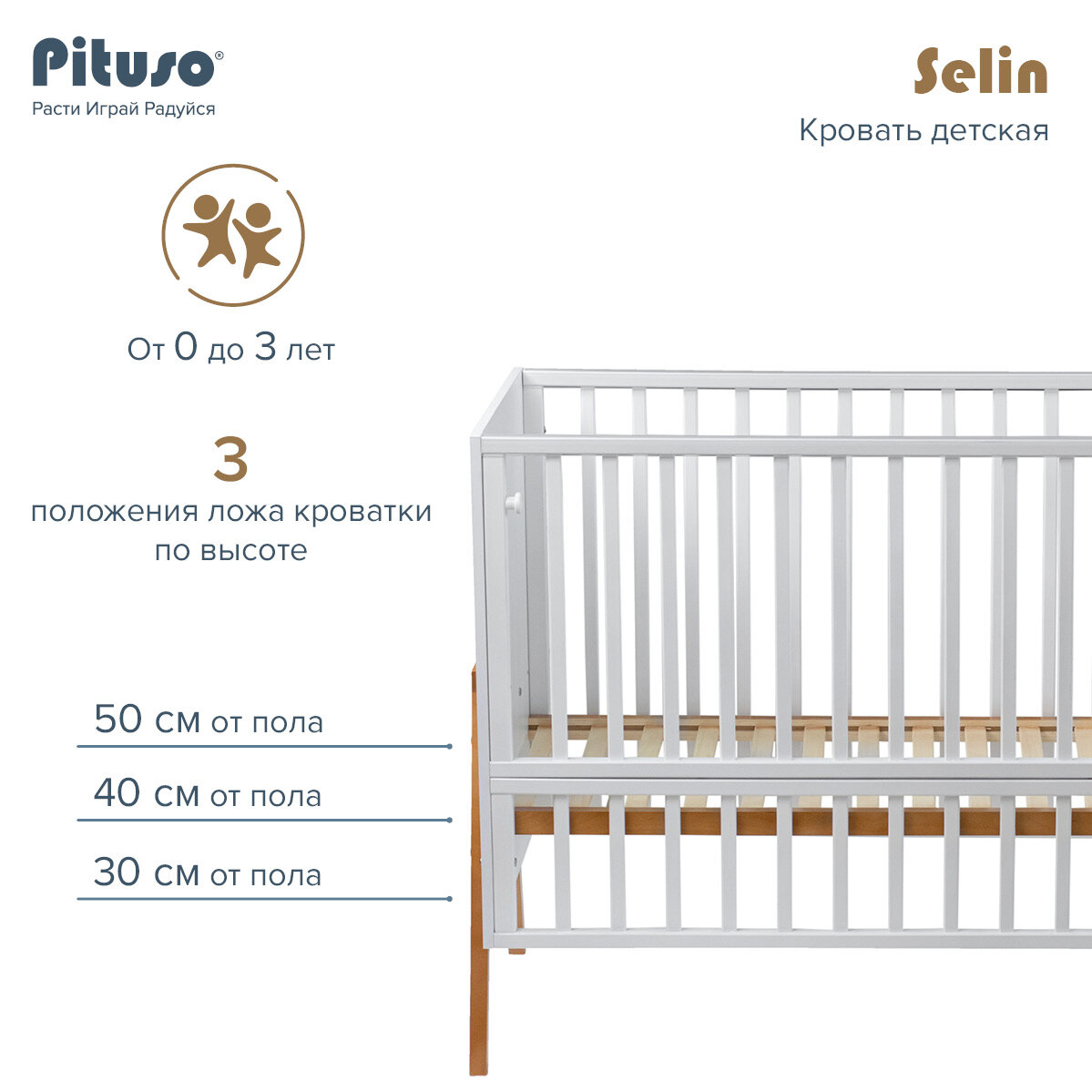 Отзывы на Кроватка для новорожденного Pituso Selin, 120х60 см, съёмный бортик, съёмные колёса, белый/бук