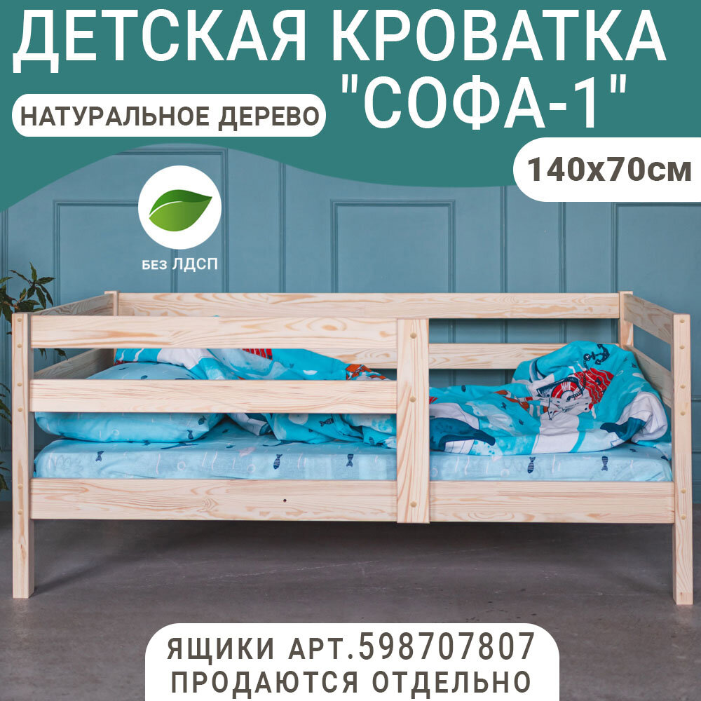 Кровать детская Софа 1, неокрашенная, натуральное дерево, спальное место 140х70 см информация: