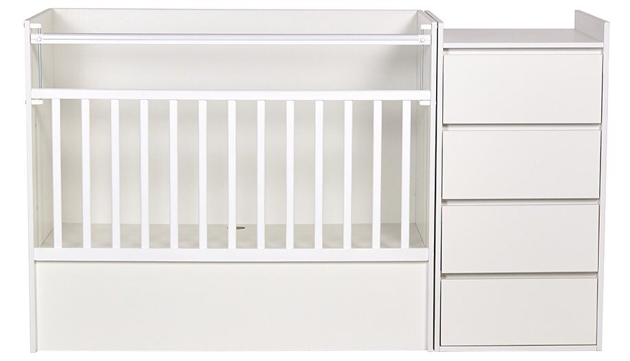 Кроватка-трансформер детская Polini kids Simple 1902, с комодом, белый информация: