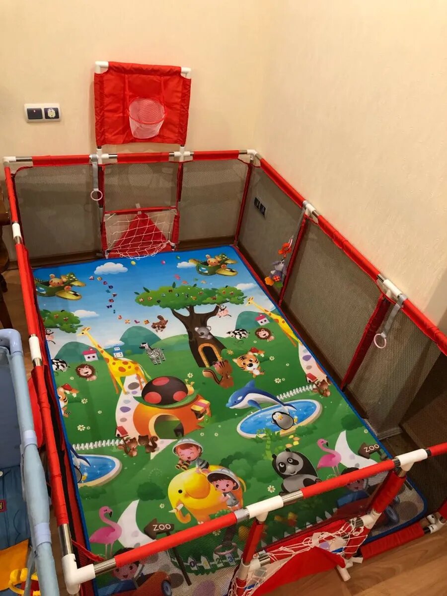 Характиристики этого товара не найдены!Отзывы на Детский манеж, с корзиной, ручками, усиленный каркас, 189x126x66 см