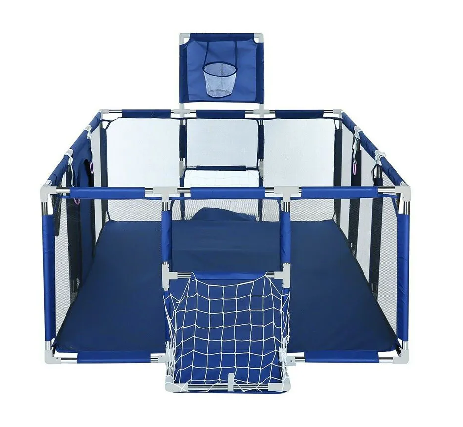 Манеж детский с игровыми воротами и баскетбольным кольцом, синий информация: