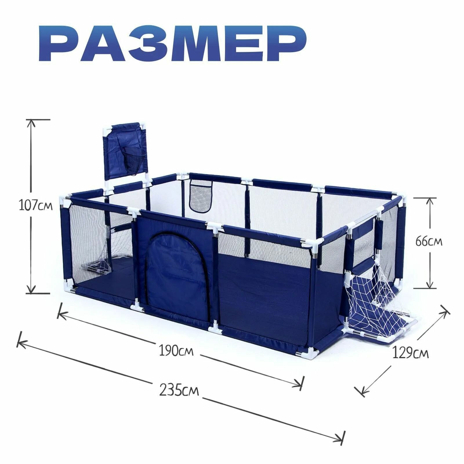 Детский напольный манеж игровой с воротами, синий информация: