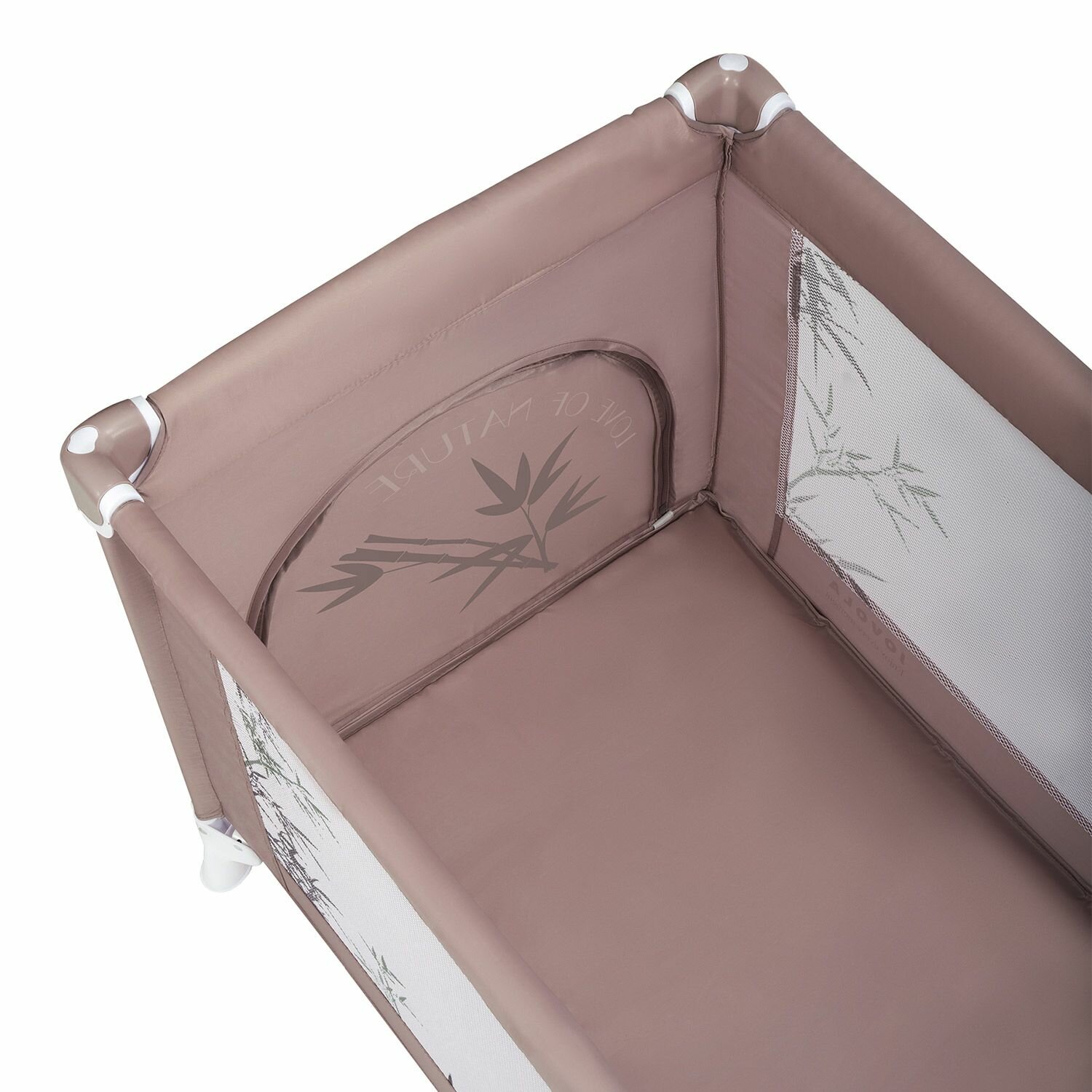 Манеж кровать детский JOVOLA AMICO, для новорожденных с матрасом и москитной сеткой, складной, 2 уровня, бежевый бамбук (мокко) информация: