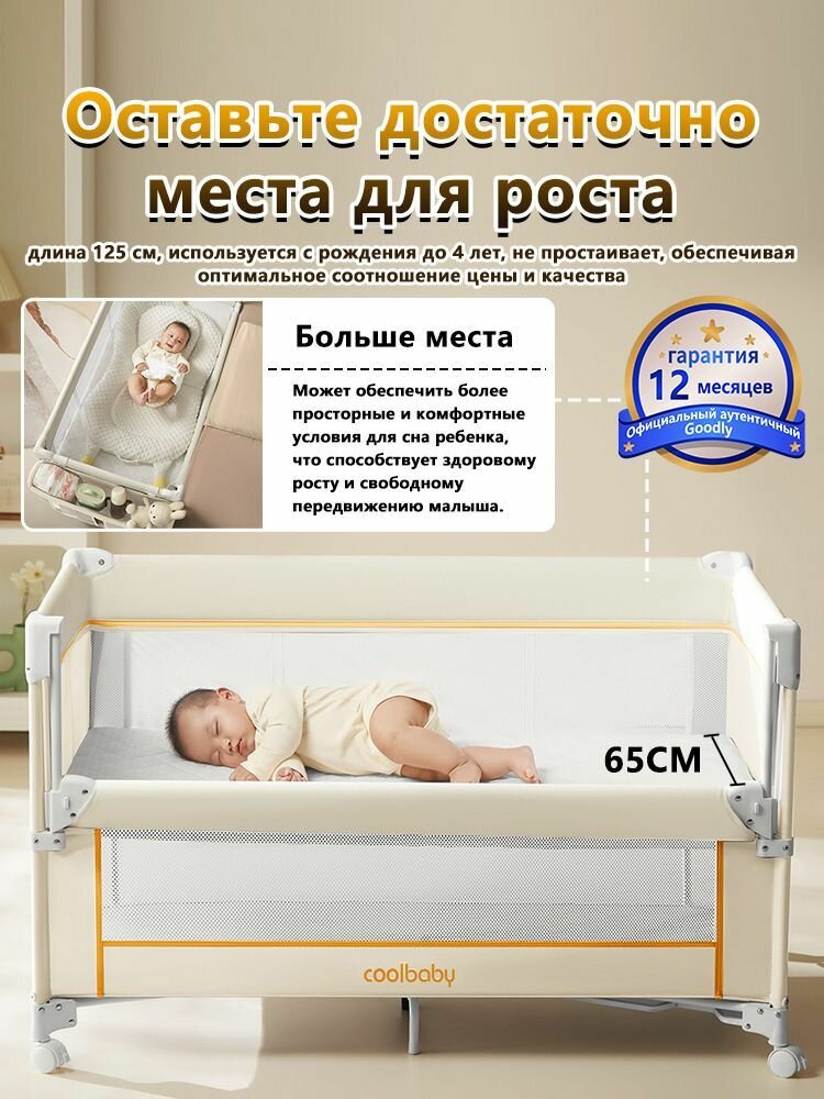 10 цен на Манеж, кровать и кроватка приставная 3 в 1, 2 уровня, с рождения, складная с сумкой переноской, светло-серый