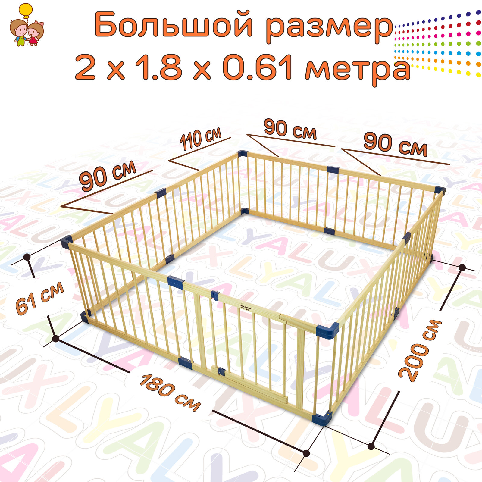 Большой детский деревянным манеж LYALYALUX SL139-2x1.8, 8 секций 2x1.8м, калитка информация:
