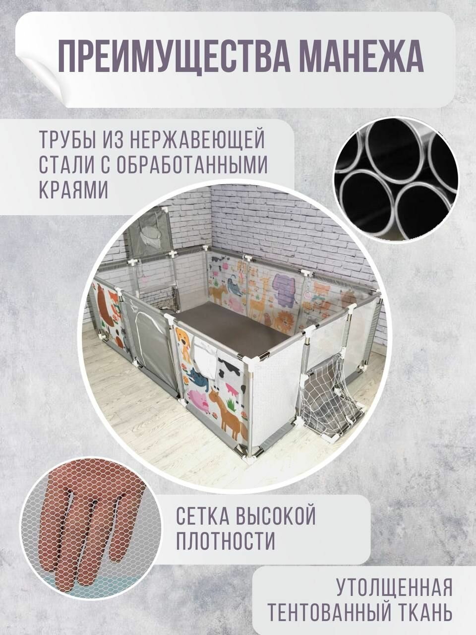 Манеж детский напольный игровой большой с футбольными воротами и баскетбольным кольцом серый с рисунком Safely & Soft информация: