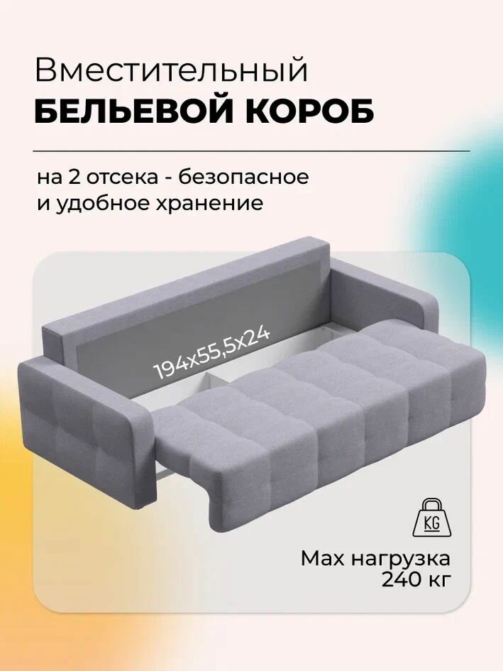 Диван-кровать DANDY Euro SE, с ящиком для хранения, рогожка Malmo платина, 235x105x92 см информация: