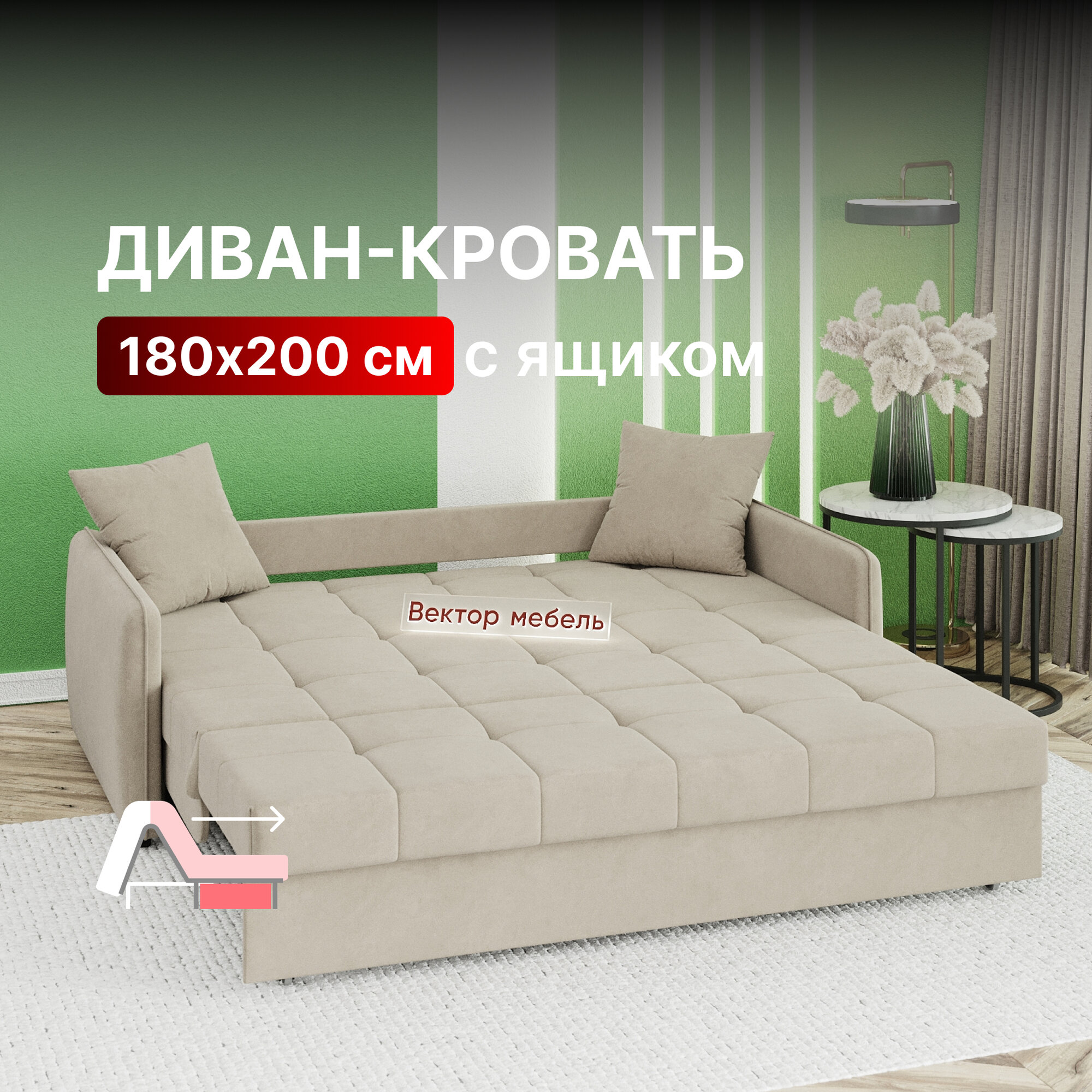 10 цен на Диван-кровать с ящиком раскладной прямой Хилтон, аккордеон, ортопедический, 180х200, велюр бежевый