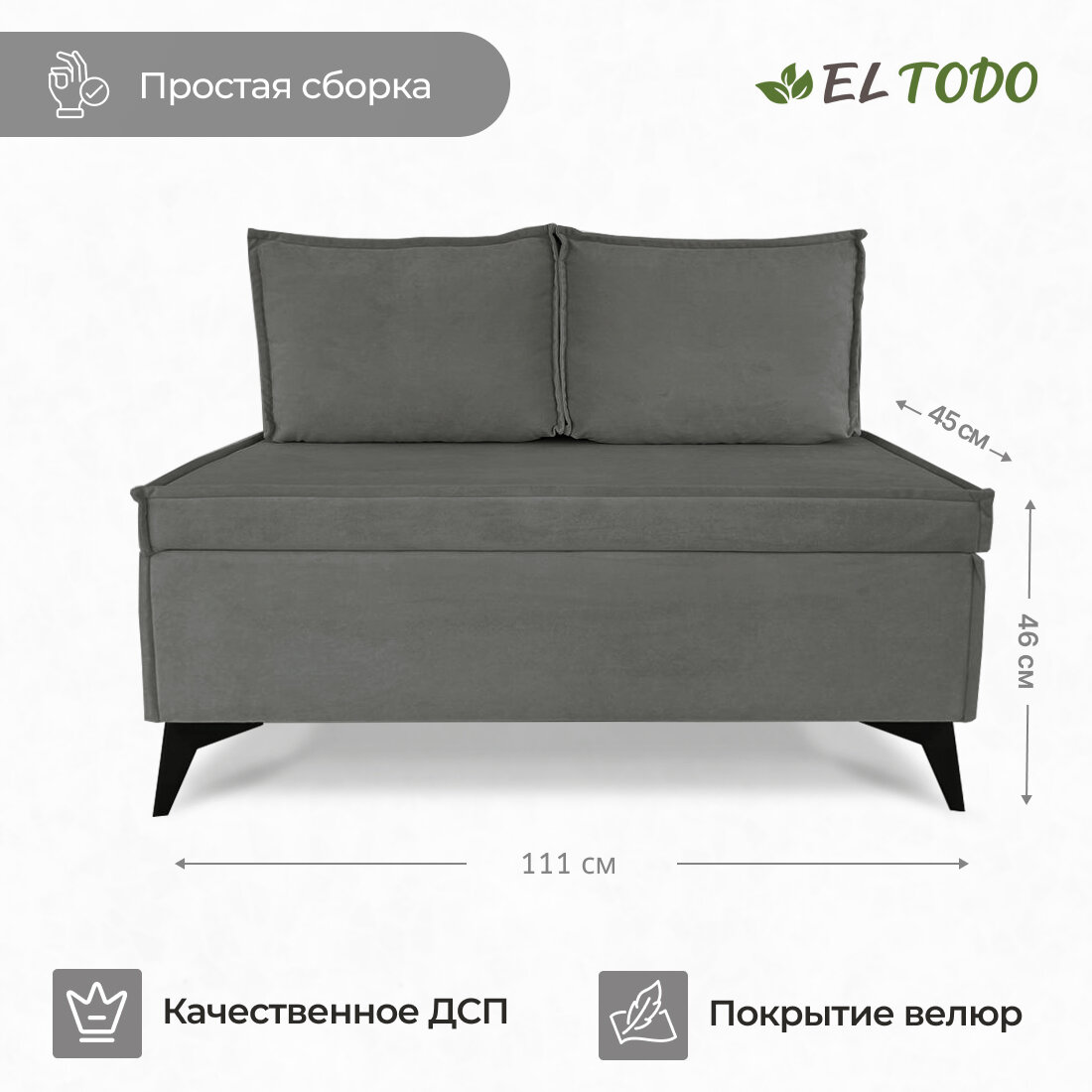 Прямой диван EL TODO монро, на кухню, на балкон, в прихожую, велюр, серый,110х60х82 см 15 990 ₽