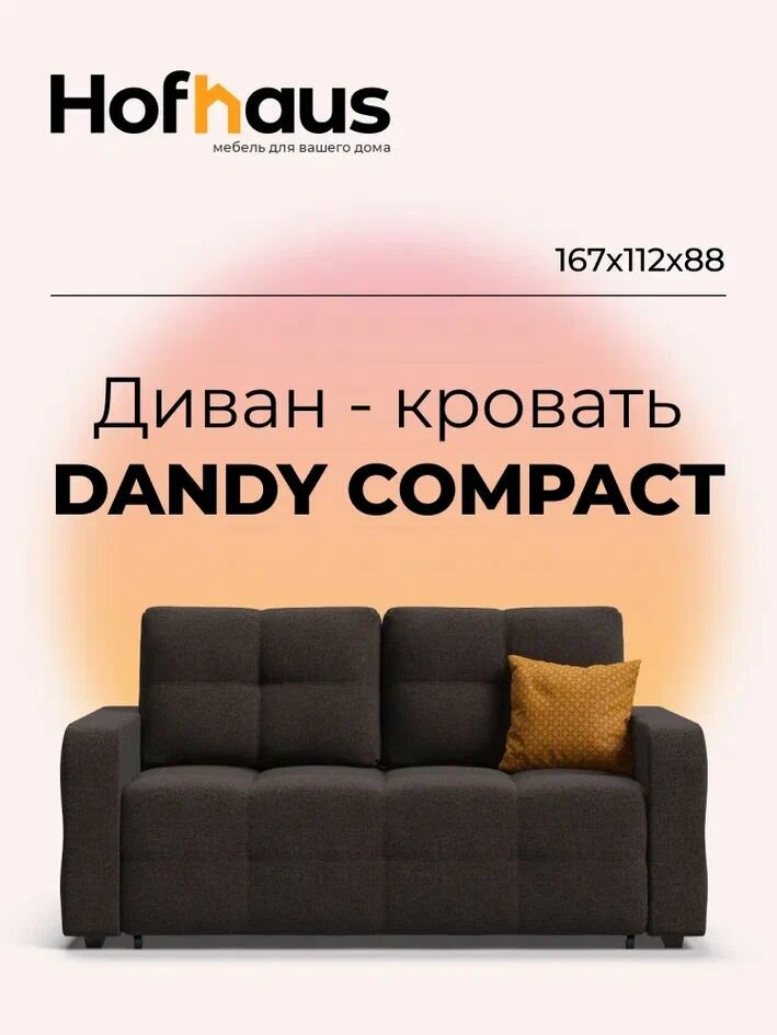 Раскладной диван-кровать Dandy Compact, механизм выкатной easy roll, рогожка Malmo шоколад, 167х112х88 см информация: