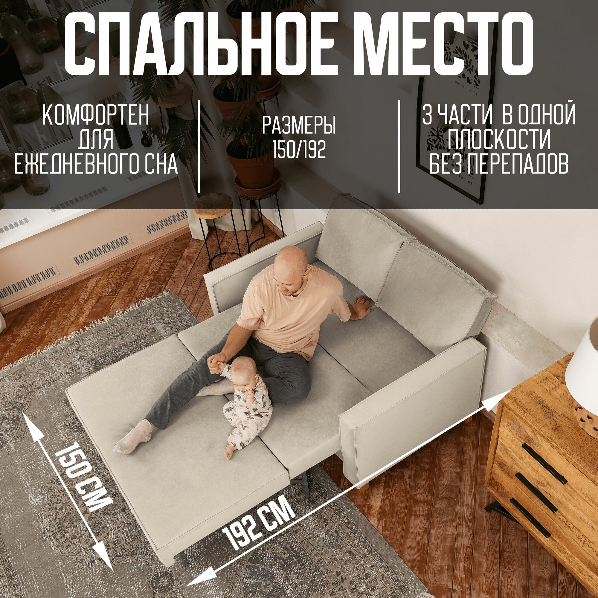 BUSHE Диван-кровать COMFO, механизм Раскладной, угол универсальный, бежевый 185*87*85 52 699 ₽