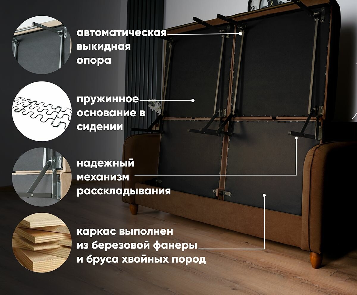 BUSHE Диван-кровать COMFO, механизм Раскладной, угол универсальный, коричневый 155*87*85 43 699 ₽
