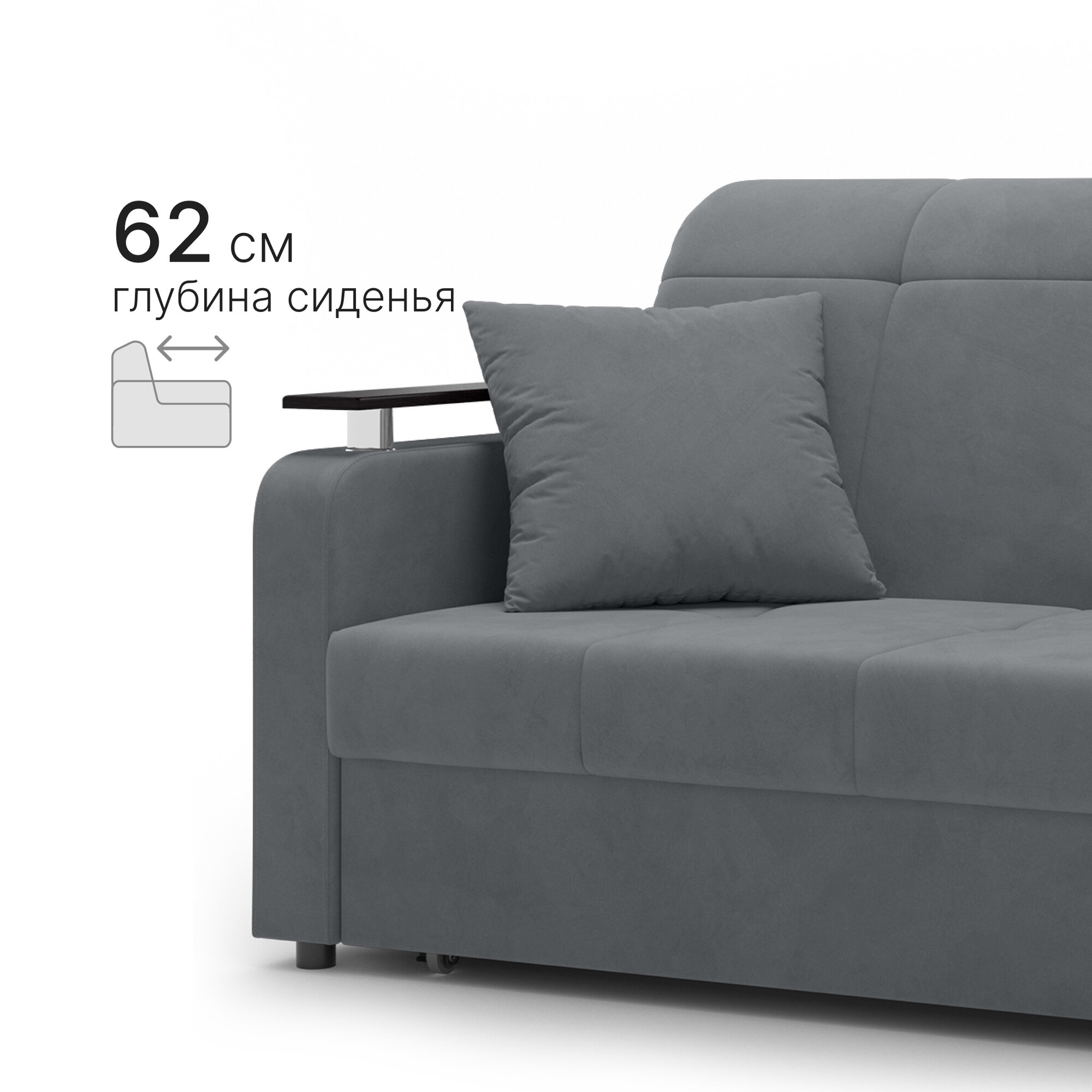10 цен на Диван-кровать раскладной Прямой на металлокаркасе, Аккордеон, ортопедический, 140х200, Остин NEW, велюр темно-серый