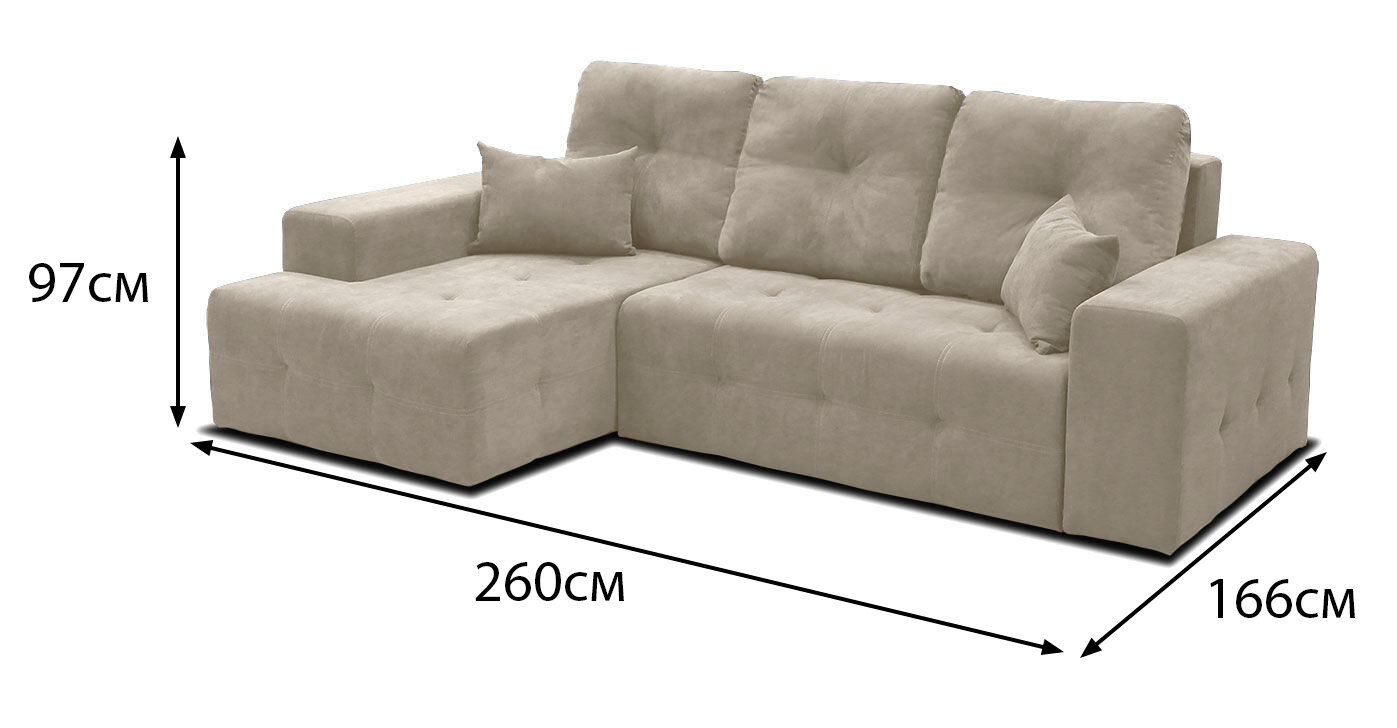 Диван угловой МасМеб Питсбург, цвет бежевый, Левый угол, еврокнижка информация: