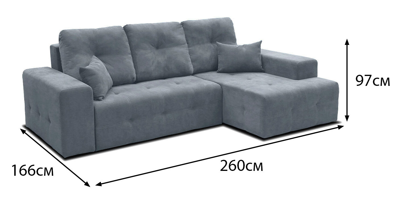 Диван угловой МасМеб Питсбург, цвет серый, Правый угол, еврокнижка информация: