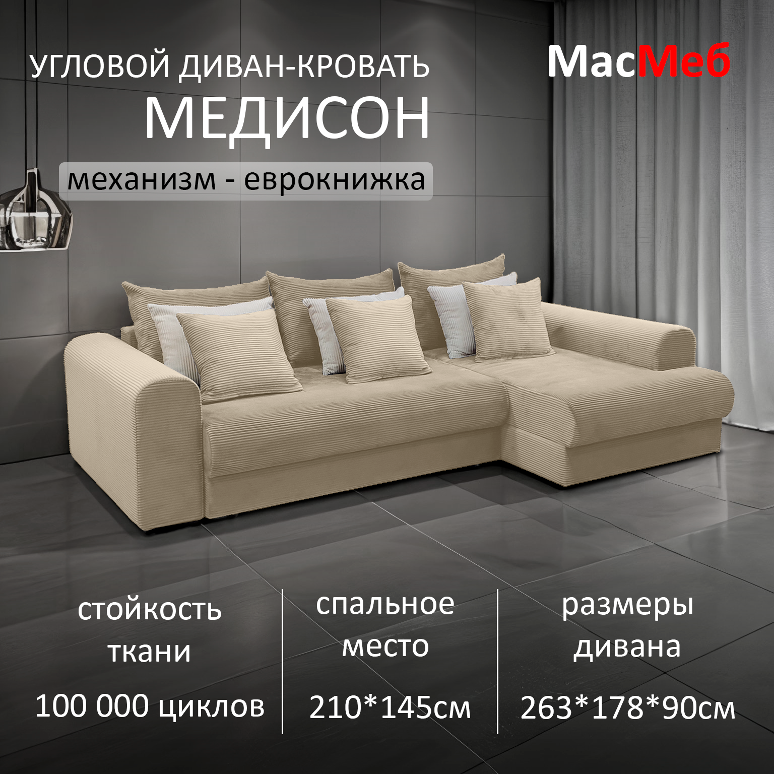 Диван угловой МасМеб Медисон, цвет бежевый, Правый угол, еврокнижка информация: