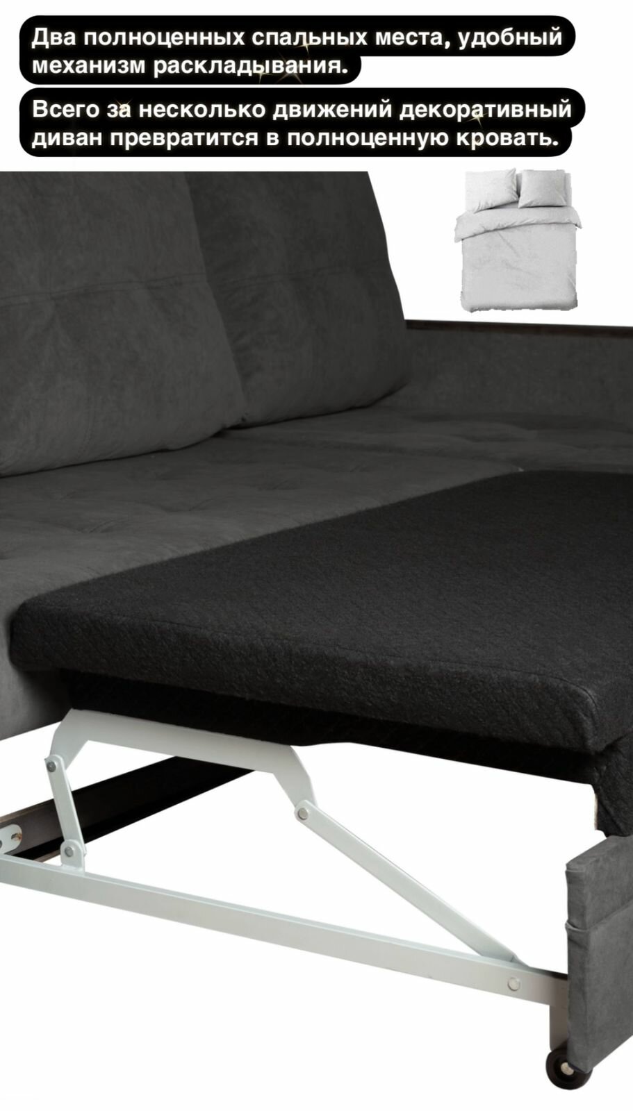 Диван ООО 21 век Плюс Атлант "Бар", раскладной, с ящиками, угловой, велюровая обивка, тёмно-серый информация: