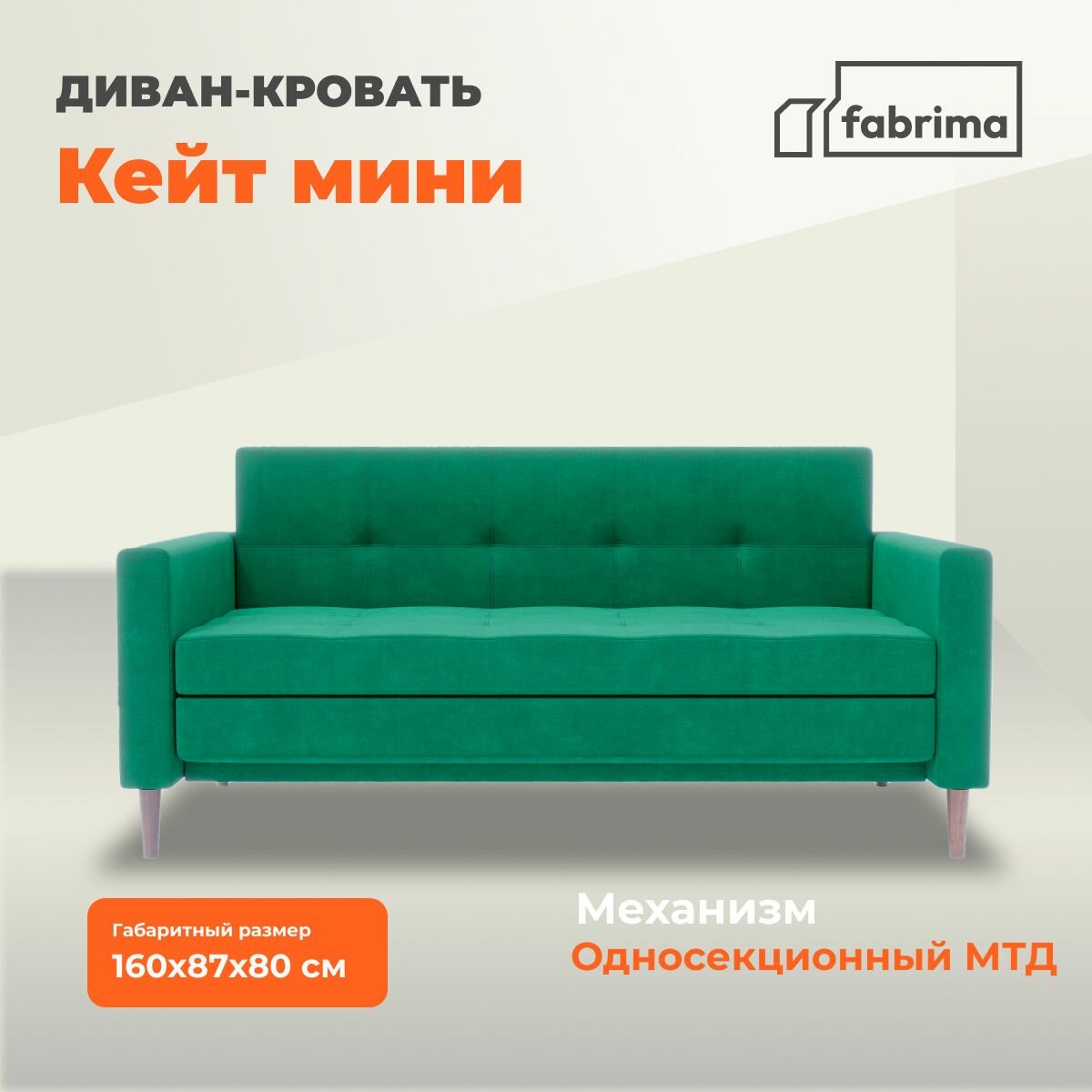 10 цен на Прямой диван-кровать Кейт мини, раскладной, 160х87х80, зеленый велюр