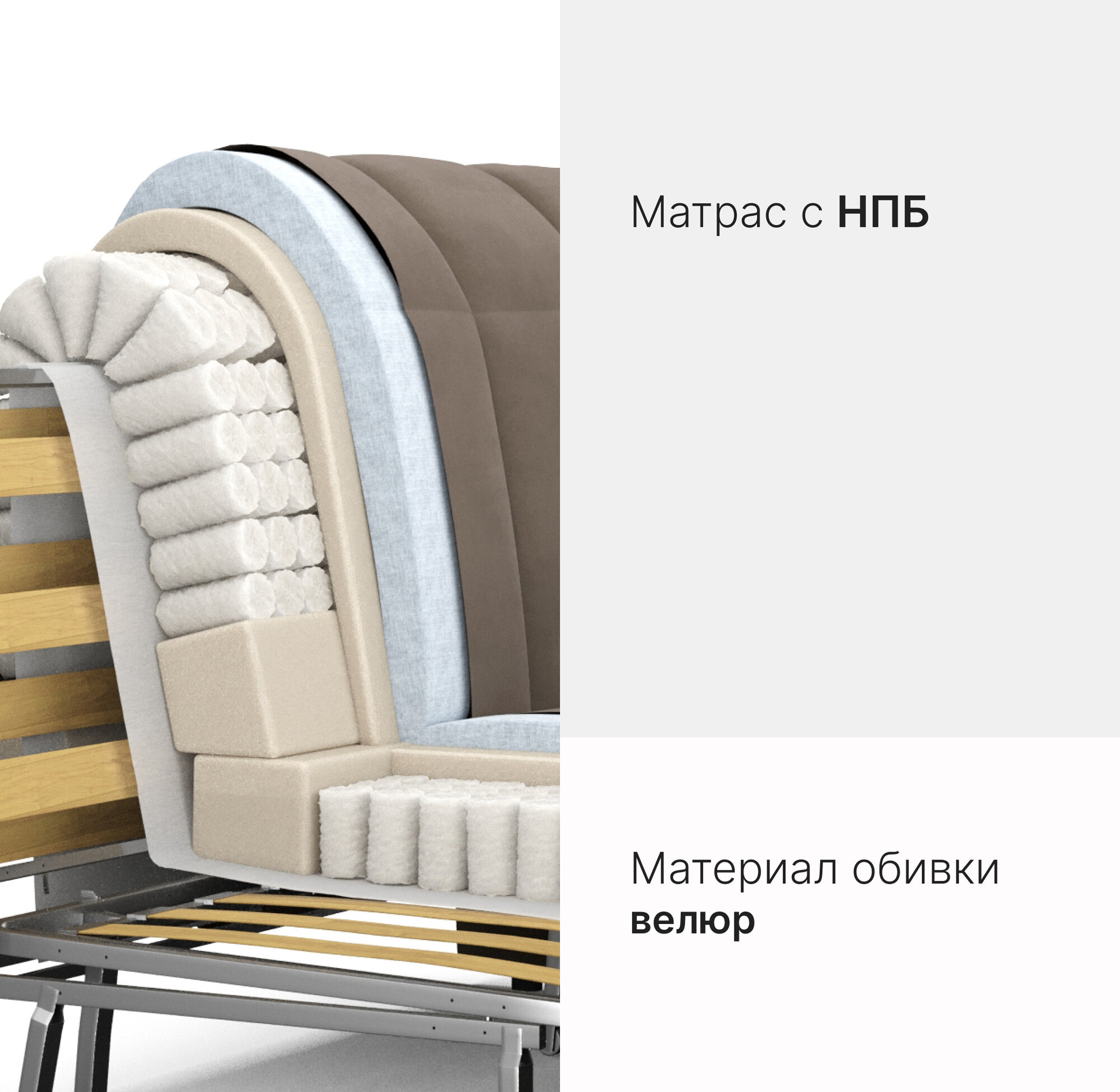 Диван-кровать 160х200 аккордеон с независимым пружинным блоком на металлокаркасе светло-серый Истван Лайт 54 990 ₽