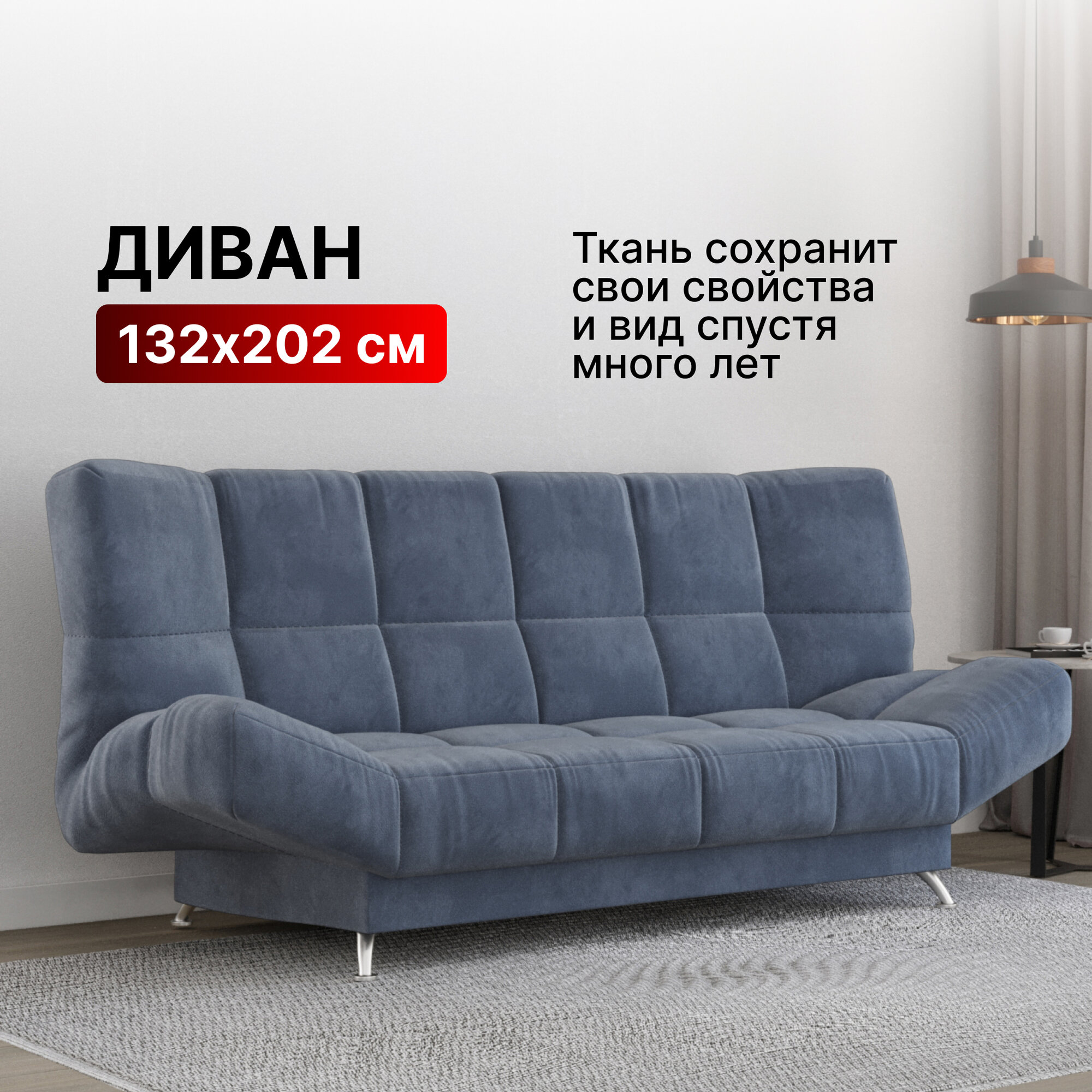 10 цен на Диван-кровать раскладной Прямой, Клик-кляк, Беспружинный, 132х202 спальное место, Палермо, велюр темно-синий