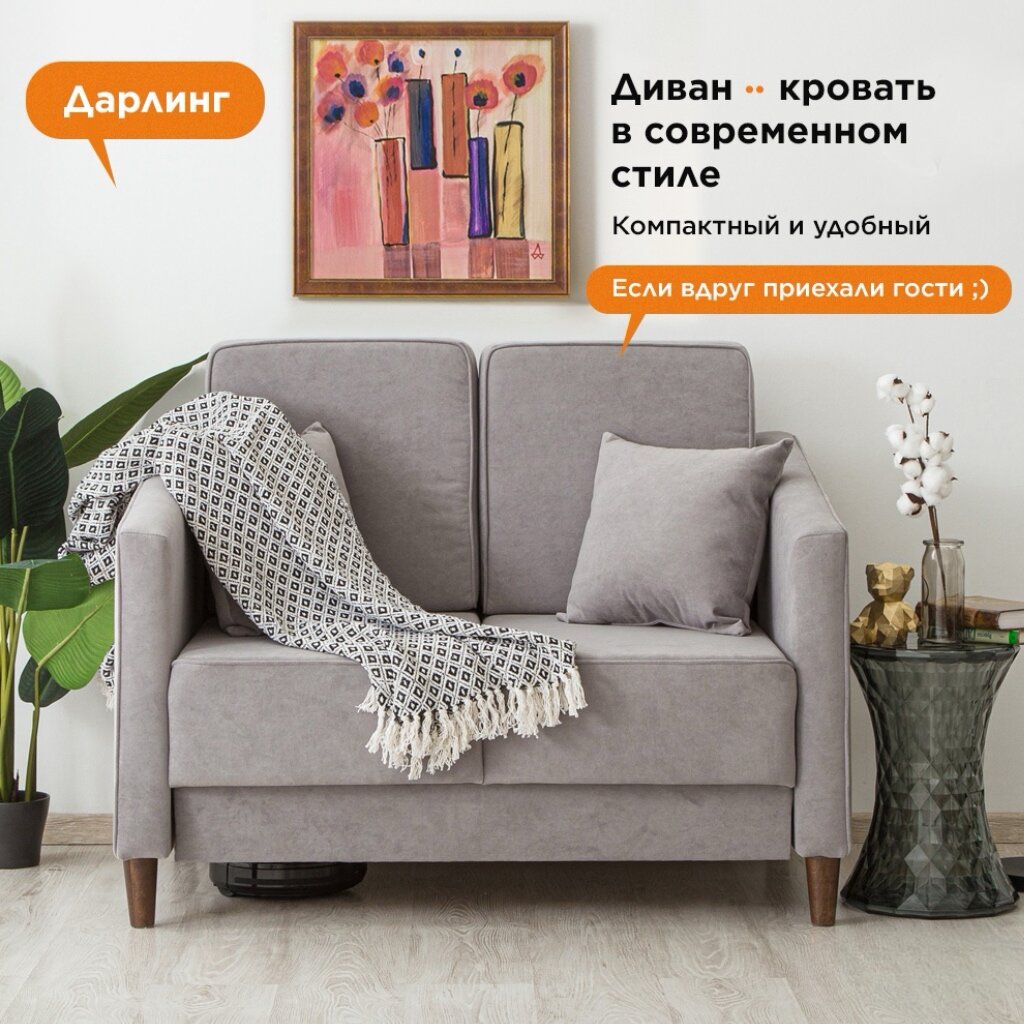 Диван-кровать Дарлинг, диван серый раскладной, 120 х 78 см информация: