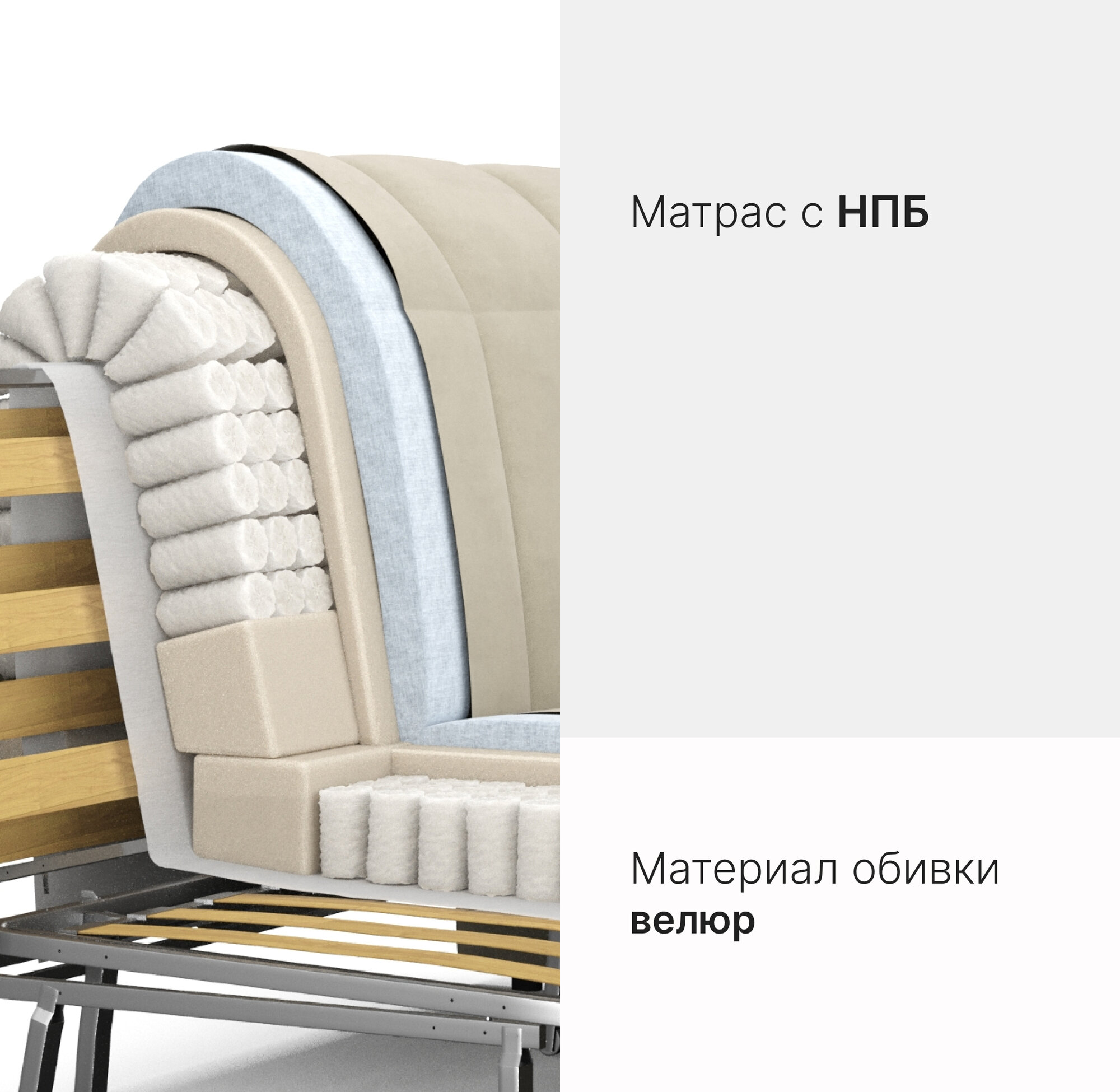 Диван-кровать с ящиком аккордеон с независимыми пружинами на металлокаркасе Бежевый Истван Лайт, 160х200 спальное место информация: