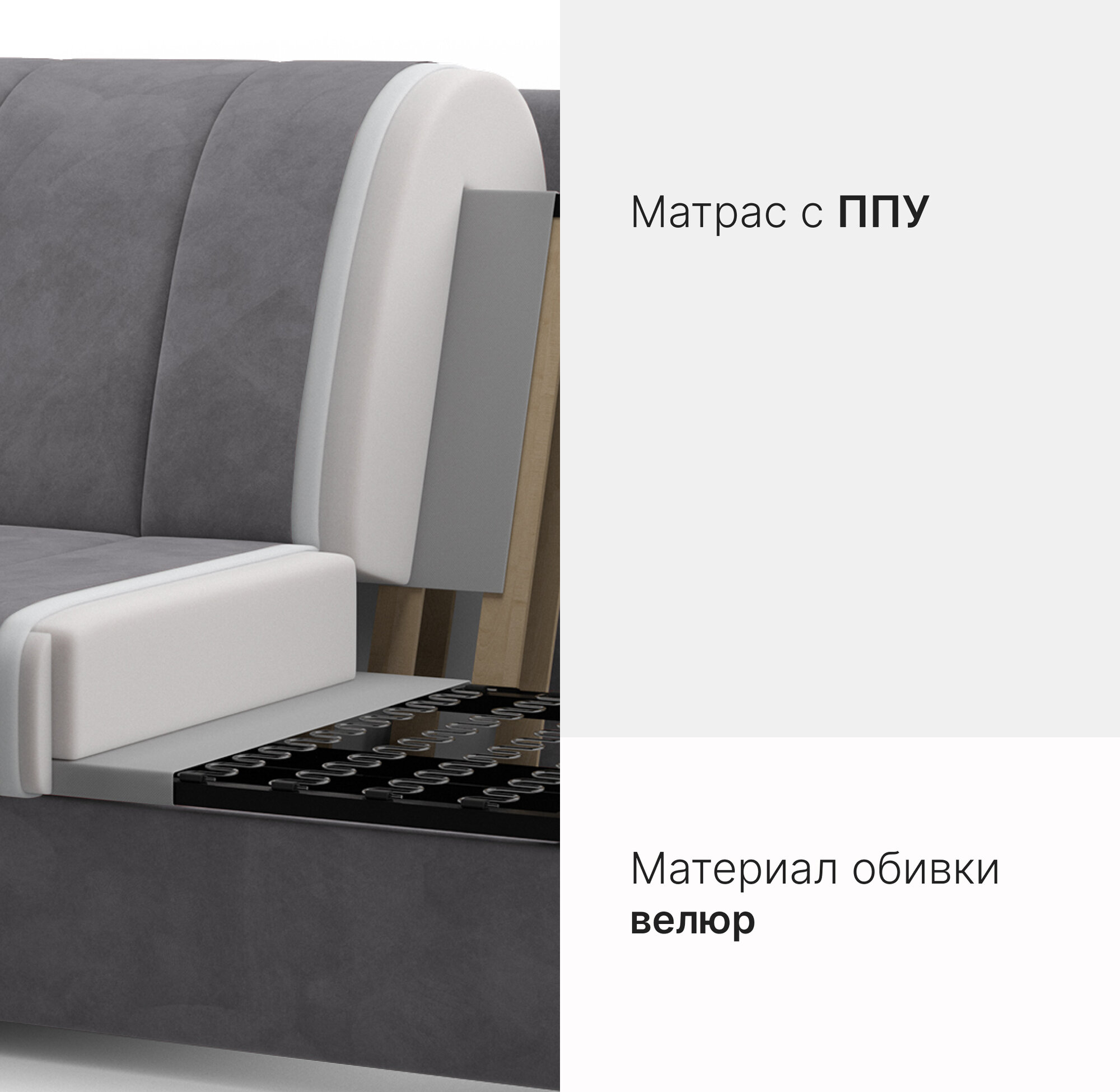 Диван-кровать раскладной Прямой на металлокаркасе, Аккордеон, ортопедический, 160х200, Вернисаж, велюр серый информация: