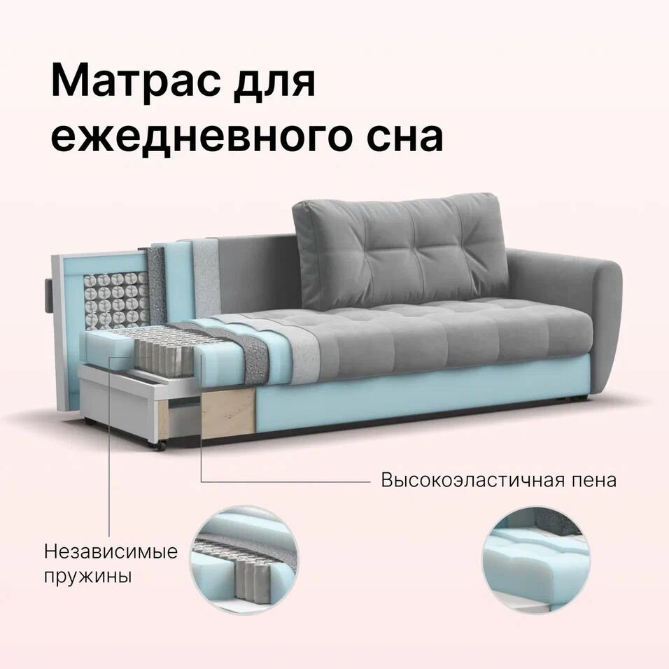 Отзывы на Диван-кровать Престон 2.0, с ящиком для хранения, еврокнижка, велюр Monolit сталь, 235х104х93 см