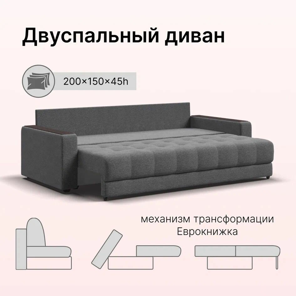 Отзывы на Диван-кровать с ящиком для хранения Boss 2.0, еврокнижка, рогожка Malmo серый, 235x110x89 см