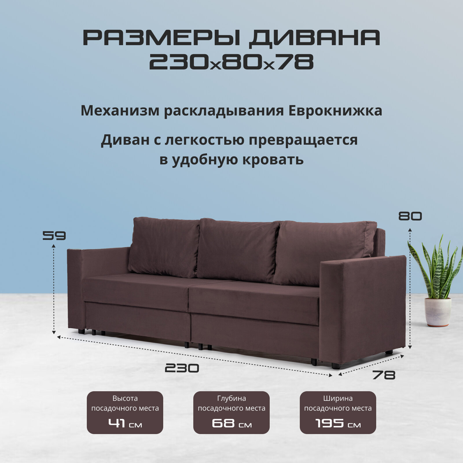 Отзывы на Диван кровать Аликанте раскладной двуспальный еврокнижка шоколадный велюр, Divan24