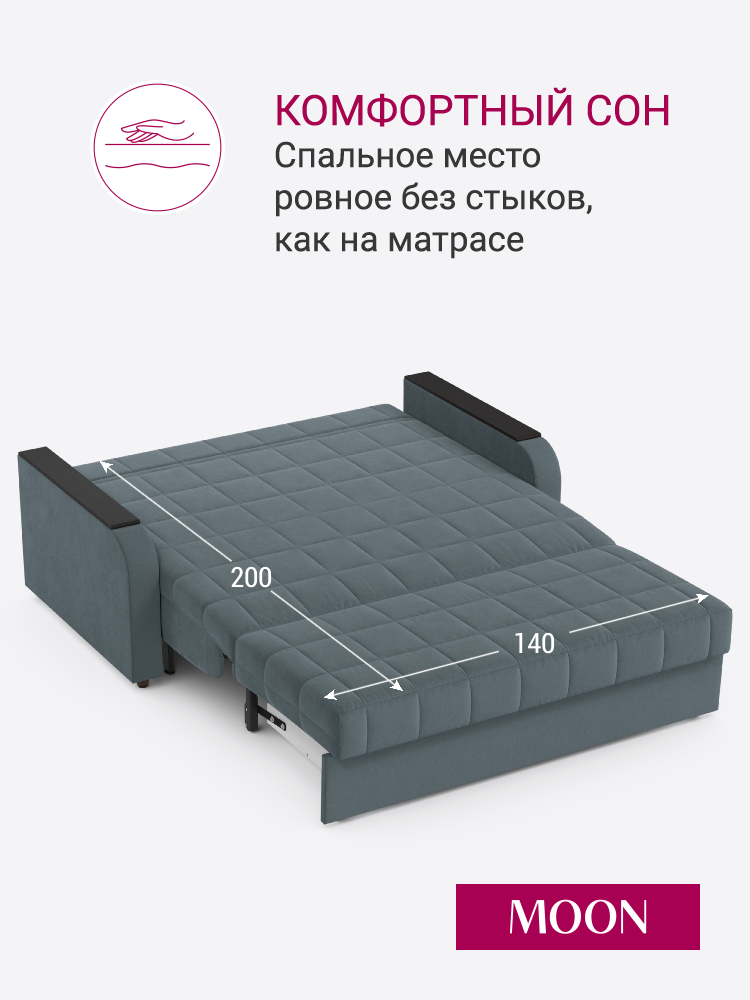 Отзывы на Диван-кровать аккордеон, MOON FAMILY 144, серый велюр164х106х90, спальное место 140х200