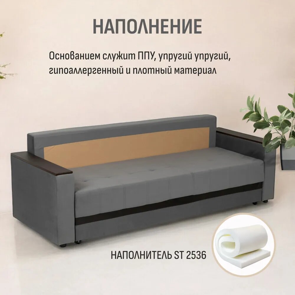 Диван-кровать аккордеон, компактный спальное место 120х200, серый / венге, матрас ППУ, габарит 175 см со столиком и ящиком для белья