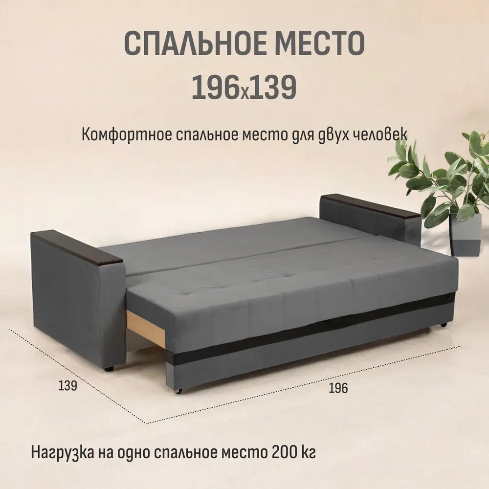 Диван-кровать прямой Верро размер: 203х100х86 см, еврокнижка, Ладья, в гостиную, спальню, спальное место: 200х150 см, Velutto 53