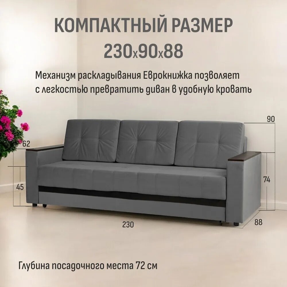 Диван-кровать "Мичиган" серый, велюр, независимый пружинный блок, механизм Еврокнижка, Диван 24 информация: