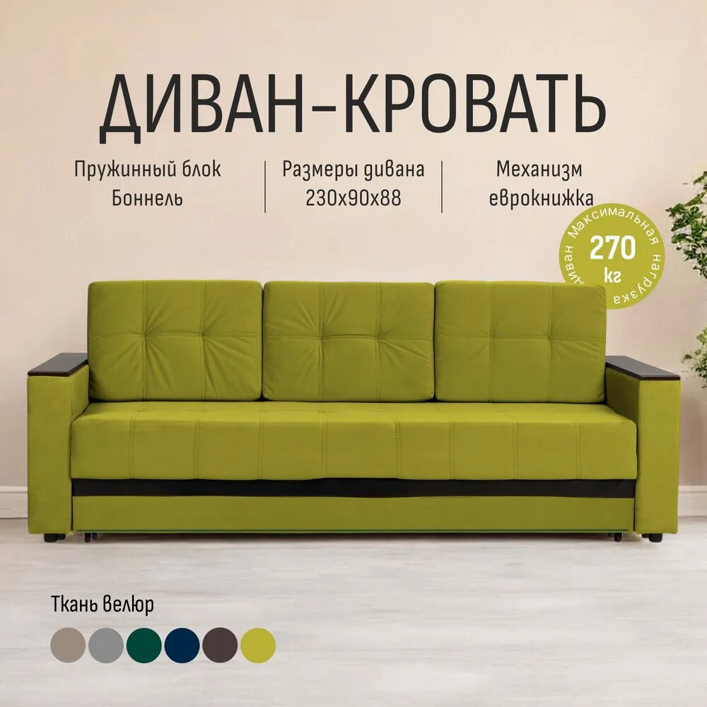 Отзывы на Диван-кровать "Мичиган" горчичный, велюр, независимый пружинный блок, механизм Еврокнижка, Диван 24