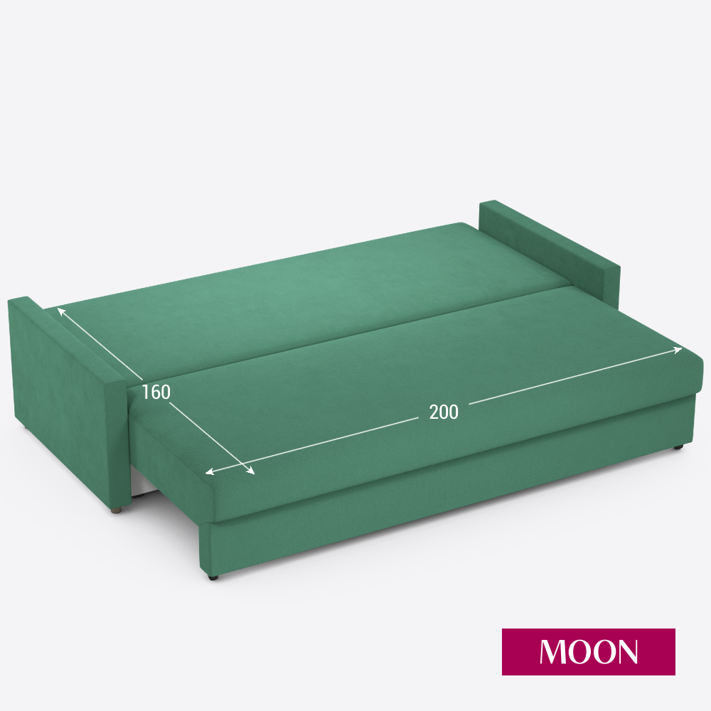Диван-кровать прямой, раскладной, еврокнижка MOON FAMILY 133, зеленый велюр, 218х101х88 см информация: