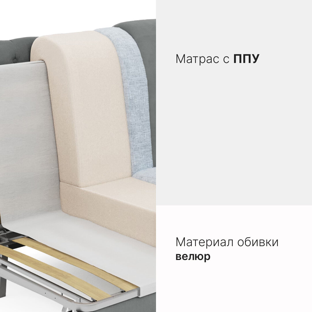 Диван-кровать раскладной прямой на металлокаркасе, аккордеон, ортопедический, 180х200 Ричард, велюр серый информация: