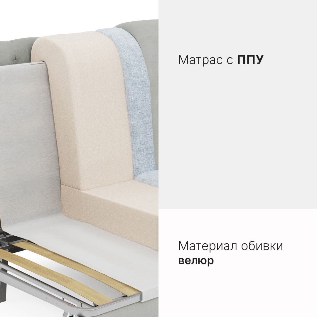 Отзывы на Диван-кровать раскладной прямой на металлокаркасе, аккордеон, ортопедический, 180х200 Ричард каретка, велюр светло-серый