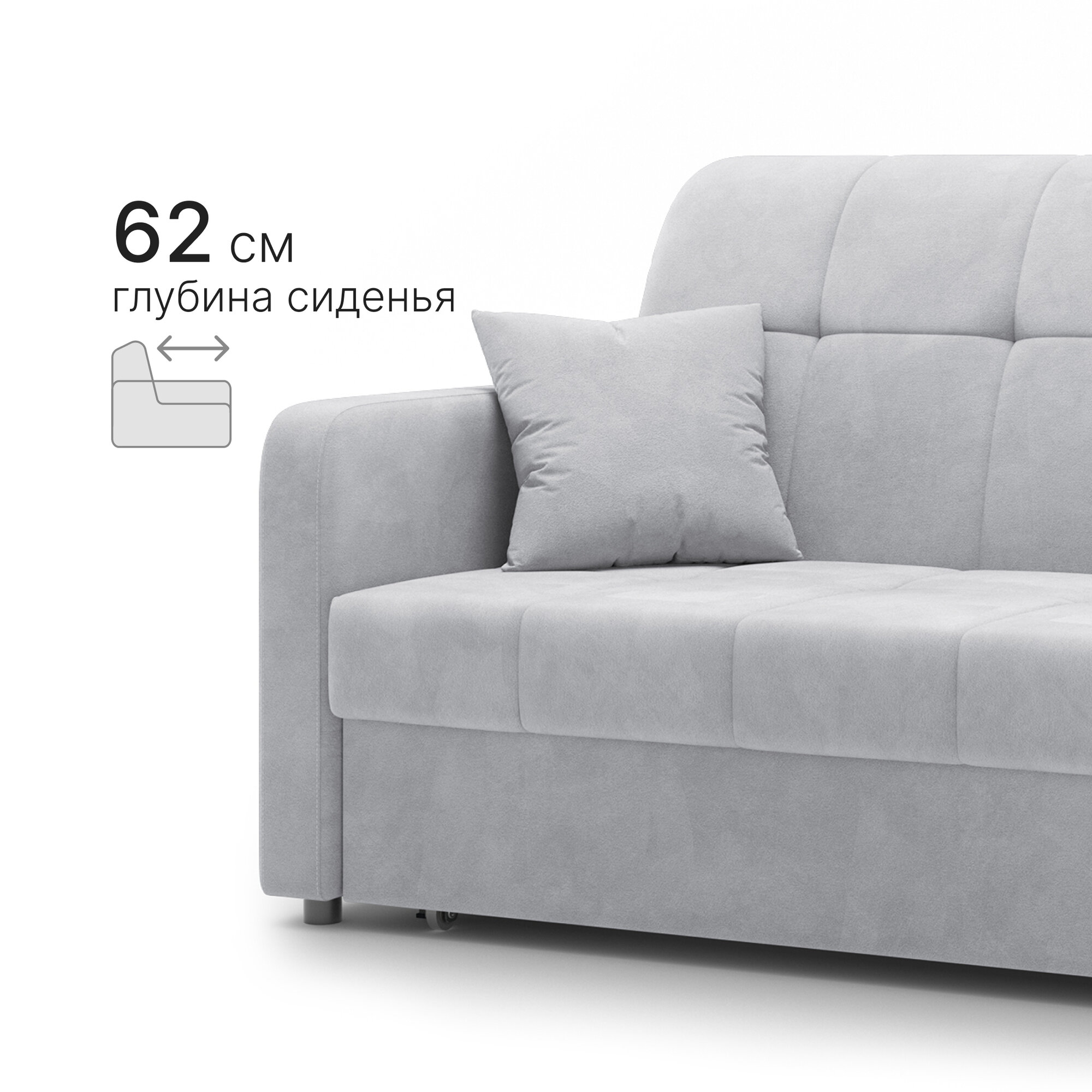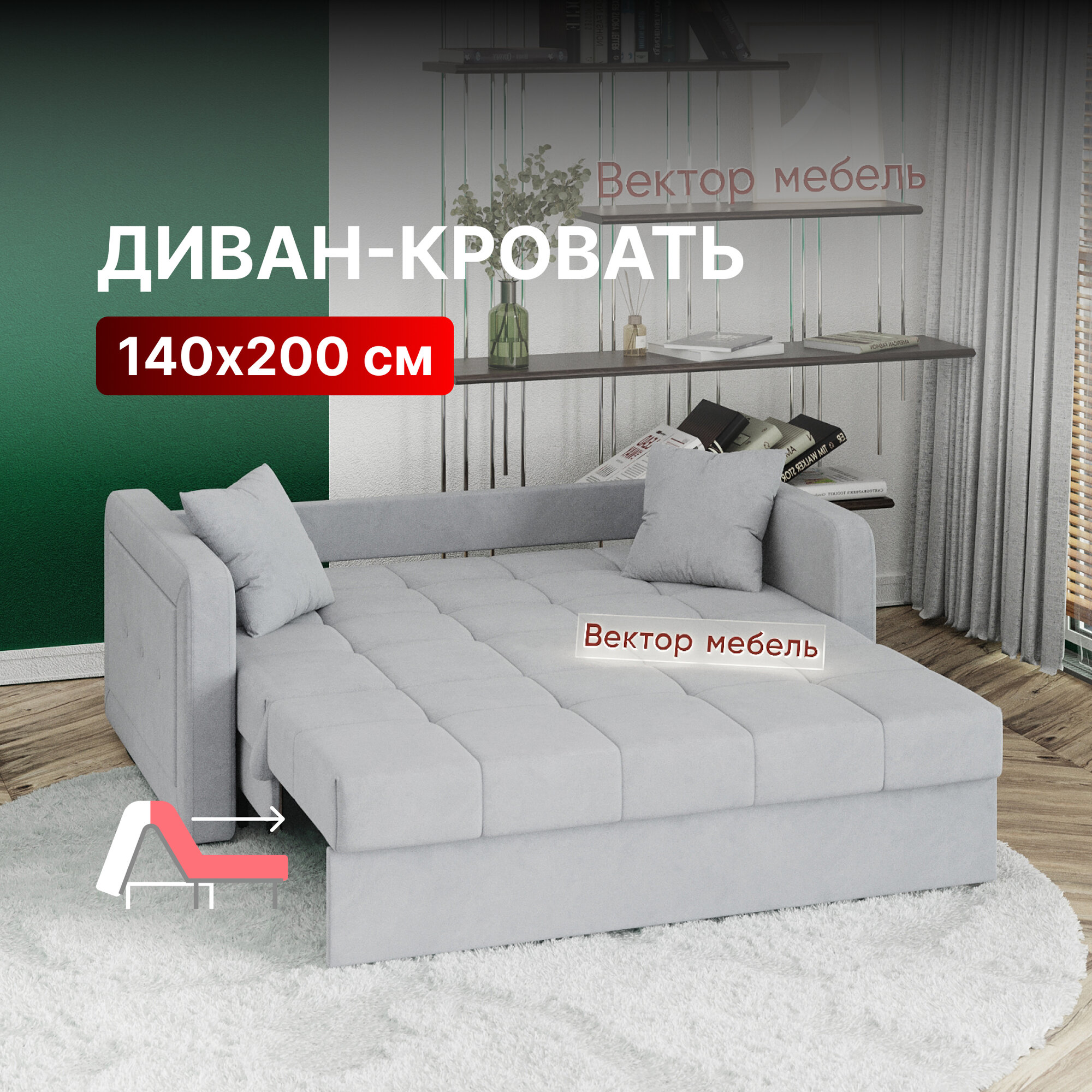 10 цен на Диван-кровать раскладной Прямой, Аккордеон, независимые пружины, 140х200 спальное место, велюр светло-серый